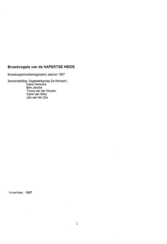 H. Hermans. (1997, January). Broedvogels van de Hapertse Heide - broedvogelmonitoringproject, seizoen 1997. Rapporten Vogelwerkgroep De Kempen. |