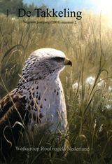 Lange dagen worden er op het moment weer gemaakt door de inventariserende WRN'ers. Enthousiaste en treurige verhalen bereiken ons oor. Meldingen over vieren vijflegsels bij de Buizerd, succesverhalen over dikke jongen met goedgevulde kroppen, opmerkelijk veel rosse woelmuizen en bosmuizen als prooi, karige aantallen van de Grauwe Kiekendief, en de eerste, prachtig gekleurde, wespendiefeieren. Daarnaast de gebruikelijke, jaarlijks wederkerende, verslagen over omgezaagde nestbomen en anderszins verstoorde broedsels. Toch lijkt het aantal gevallen van vervolging, voor zover wij het op dit moment kunnen inschatten, duidelijk minder dan de afgelopen jaren. In ieder geval werden veel minder dode roofvogels in het veld aangetroffen. Wat mogelijk meespeelt, zijn de MKZ-perikelen dit voorjaar, waardoor we wekenlang grote delen van ons onderzoeksgebied niet konden betreden. Alvorens conclusies te trekken, wachten we de nestkaarten en verdere berichten af. Dit jaar is het veertien jaar geleden dat ik actief werd binnen de WRN, waarvan de laatste zeven jaar als fulltime landelijk coördinator. Het was een tijd van actie voeren, voorlichting geven, subsidie verwerven, nieuwe artikelen (posters, boeken, ansichtkaarten, t-shirts) ontwikkelen, op poten zetten van De Takkeling en de Landelijke Roofvogeldag, contacten met de achterban uitbreiden en onderhouden, en ga maar door. Druk, druk, druk, maar ook spannend, leerzaam en vaak succesvol. Mijn rol binnen de WRN is echter een eind uitgespeeld. Voorlopig blijf ik, zolang het nodig is, op de achtergrond aanwezig voor het beantwoorden van post en telefoon. Het werk wordt vanaf heden in toenemende mate gedelegeerd en overgedragen. In De Takkeling van oktober meer hierover.
